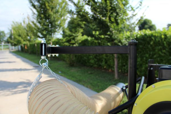Lapu savācēju ir paredzēts uzstādīt uz piekabes. Ar to var savākt lapas, zāli kā arī sīkos atkritumus un gružs no ceļu malām, ietvēm, parkiem un auto stāvvietām. Lapu sūcēja pamatne ar trīs riteņiem. Poliuretāna caurules diametrs 180mm un garums 5m. Ventilatora diametrs 330mm, ventilatora biezums 4mm. Izmetēja rotācija 360 grādi.