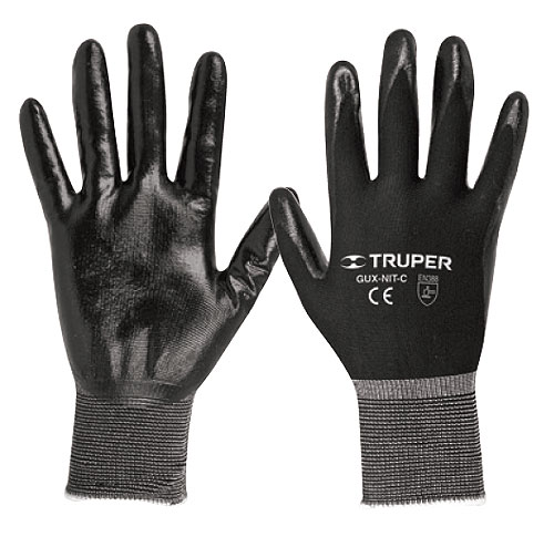 Перчатки механика - черные, хлопковые с нитриловым покрытием.