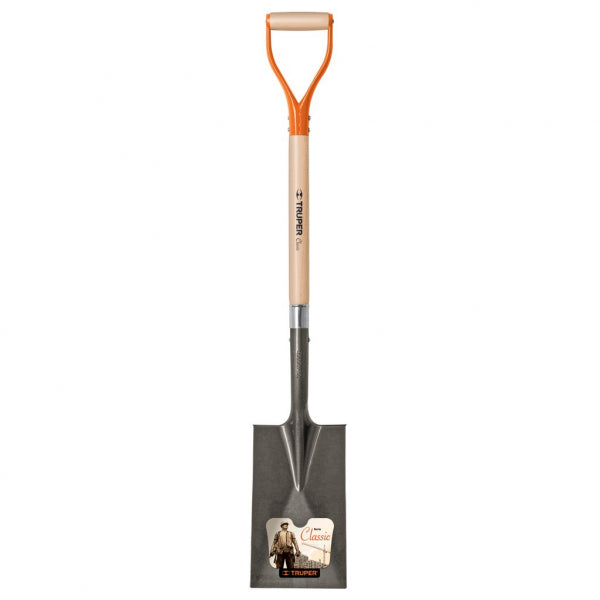 Lāpsta 103 cm, ar koka kātu un D veida metāla rokturi, kantains gals